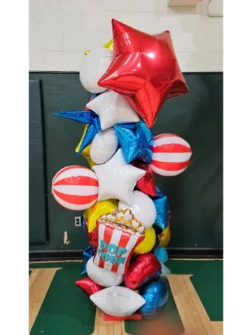 7 ft Freestanding column with "firework" latex balloon topper. Pricing does not include delivery/setup/takedown costs.