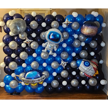 Balloon wall constructed with latex linking balloons in color of your choice. Enhanced with foils to elevate event theme. Includes stand rental. Indoor or outdoor